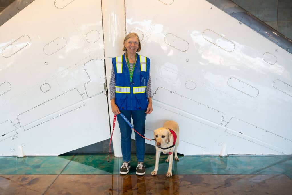 SLO County Airport (SBP) is excited to introduce SBPaws, our therapy dog program in partnership with the Alliance of Therapy Dogs. Designed to enhance your travel experience, SBPaws brings certified therapy dogs into our terminal to provide comfort, reduce stress, and make your time at the airport more enjoyable.